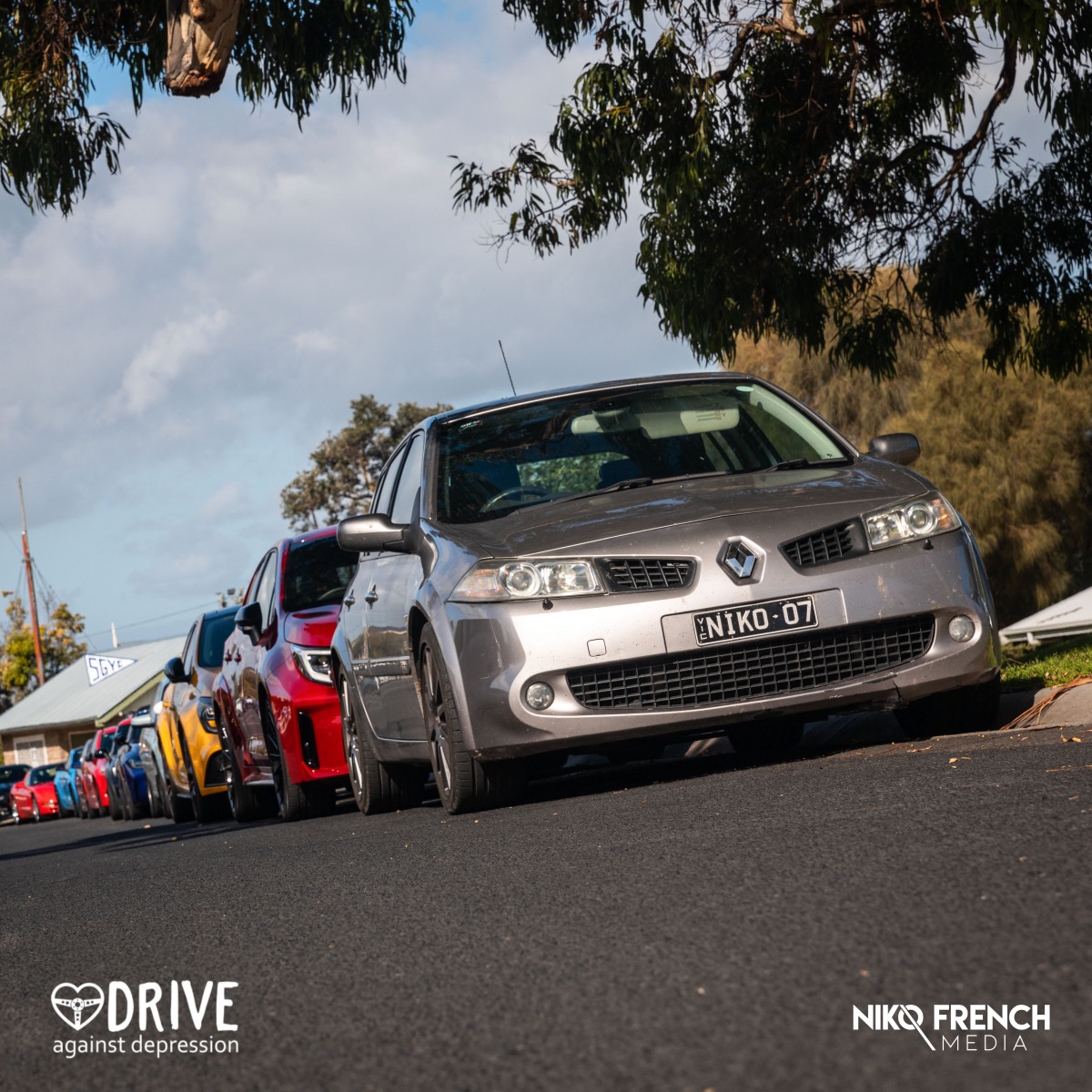 Niko French captured the moments of connection, conversation and cars in this gallery, while DAD Ambassadors James Wong and Chelsea Angelo moved seamlessly through the day to support with registration and welcoming adidas Gazelle sneakers our crews. Kara Costello rocked our raffle ticket sales, Rod Costello delivered his first briefing as a newly appointed DAD Director, Olly Bridge had our group captivated again with his honesty and relatable mental wellness advice and Andrew and Georgie Weir kept our group moving through the course.